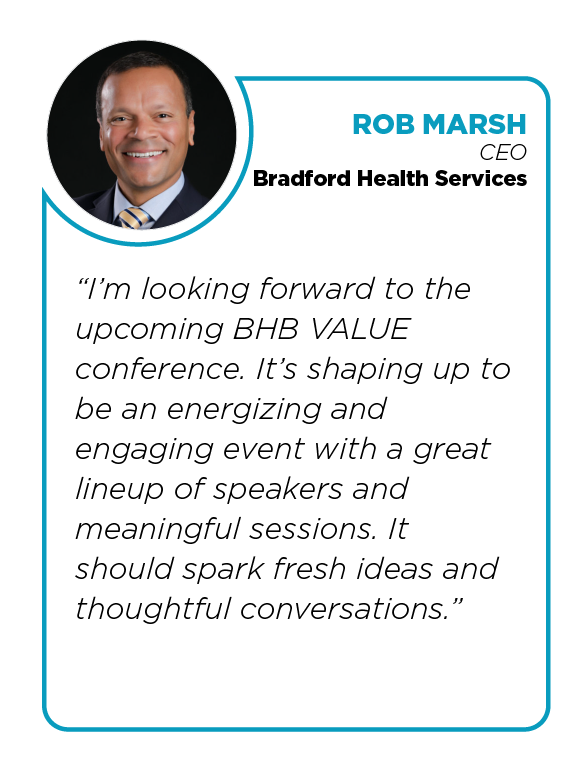The Behavioral Health Business VALUE Conference brings together nationally renowned C-suite executives and thought leaders for impactful networking and learning. Through collaboration, insights, and strategy, we empower providers and vendors alike to embrace change, elevate performance, and shape the future of value-based care and future payment models in behavioral health.